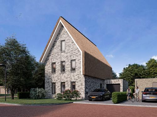Standaard erker voor extra licht en ruimte, een rieten kap voor een luxe uitstraling en een royaal woonoppervlak dat naar wens verder uit te breiden is.