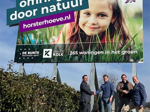 Vorige week werd samen met de betrokken wethouders het bouwbord van Horsterhoeve onthuld. Dit markeert een belangrijke en zichtbare stap in de ontwikkeling van dit nieuwbouwproject. Het bouwbord is te vinden tussen de Spijkweg en de A28, vlakbij de toekomstige bouwlocatie.